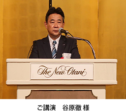 続いて、役員・総代、それ以外の組合員やメーカー会員ら約160名が参加する懇親会に移り、古里副理事長が組合の前年度事業を報告し、「組合の質を上げなければ、その存在意義はない」と述べ、今、組合改革を進めている点を強調しました。